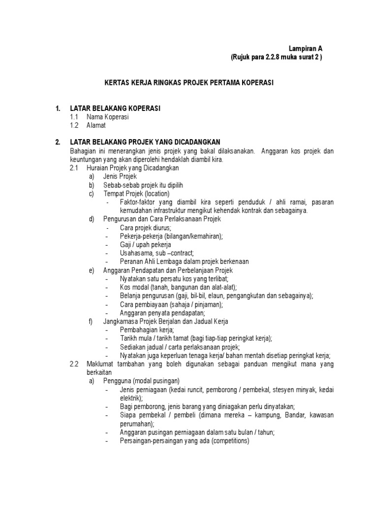 Kertas Kerja Ringkas Projek Pertama Koperasi Pdf
