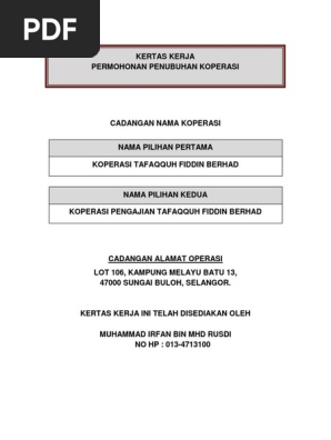 Kertas Kerja Permohonan Penubuhan Koperasi Pdf